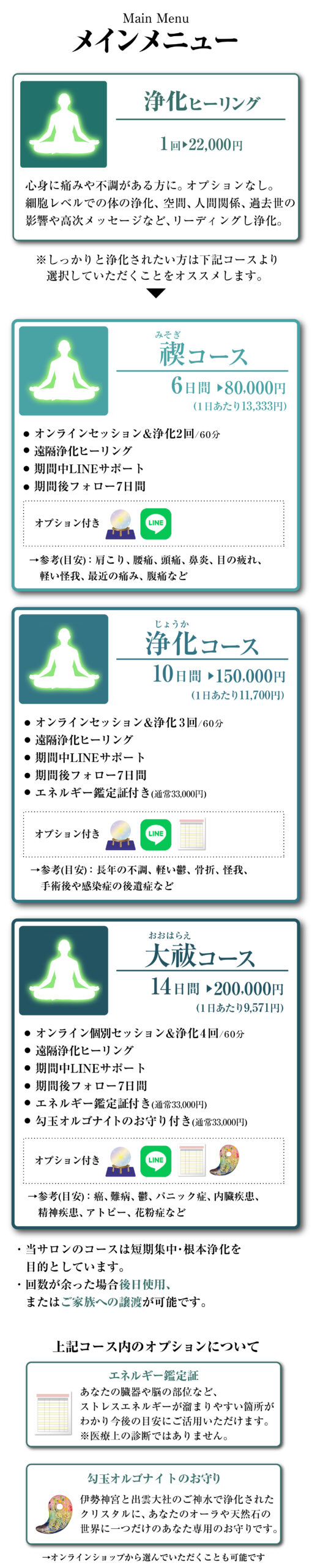 ※浄化ヒーリング®は医療行為ではなく効果の感じ方には個人差があります。